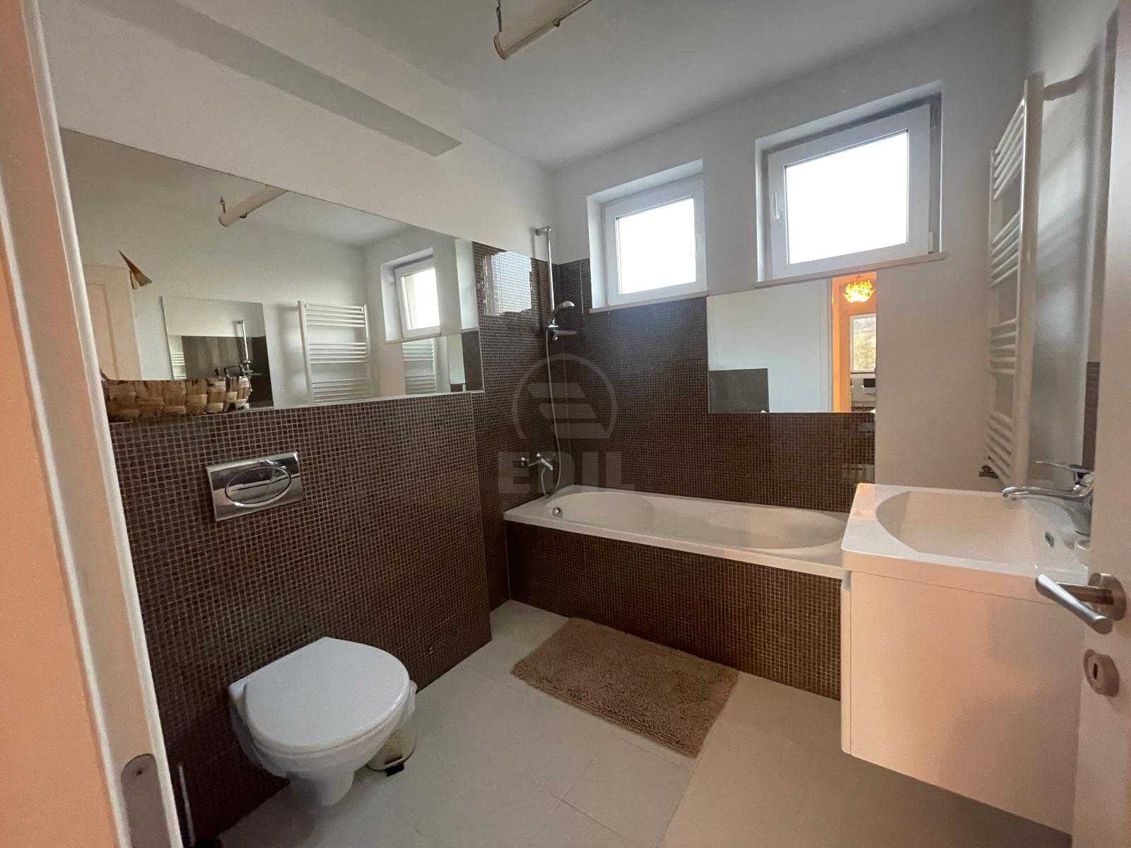 EDIL Imobiliare vă propune spre închiriere o casă lipita modernă, situată în cartierul Bună Ziua, în apropiere de Leroy Merlin. Proprietatea face parte dintr-o construcție nouă, amplasată într-o zonă liniștită, cu spațiu verde și acces facil către principalele puncte de interes ale orașului.Casa are o suprafață utilă de aproximativ 150 mp și este amplasată pe un teren de 250 mp. Este structurată pe trei niveluri, oferind un spațiu generos și bine organizat. La parter se află livingul luminos, bucătăria, o baie de serviciu și un hol spațios. Etajul întâi include două dormitoare, dintre care unul beneficiază de dressing, o baie și un hol. Etajul al doilea oferă un al doilea living, un dormitor și o baie, spațiu ideal pentru relaxare sau zonă de lucru.Casa dispune de un pod mare ce poate fi folosit ca spațiu de depozitare, o curte mică și îngrijită cu acces direct din living, precum și loc de parcare în fața imobilului (există posibilitatea parcării a două mașini). Este complet mobilată și utilată, dotată cu centrală termică proprie, ferestre termopan, uși termopan, frigider, aragaz și mașină de spălat.Proprietatea este ocupabilă imediat. Se acceptă animale de companie.Casa este ideală pentru o familie care caută confort, intimitate și un stil de viață modern într-o zonă de case bine întreținută și liniștită. Pentru mai multe detalii sau pentru programarea unei vizionări, vă invităm să ne contactați telefonic sau la sediul agenției EDIL Imobiliare, situat pe strada Iuliu Maniu nr. 13, ap. 6, Cluj-Napoca. CACJ355377