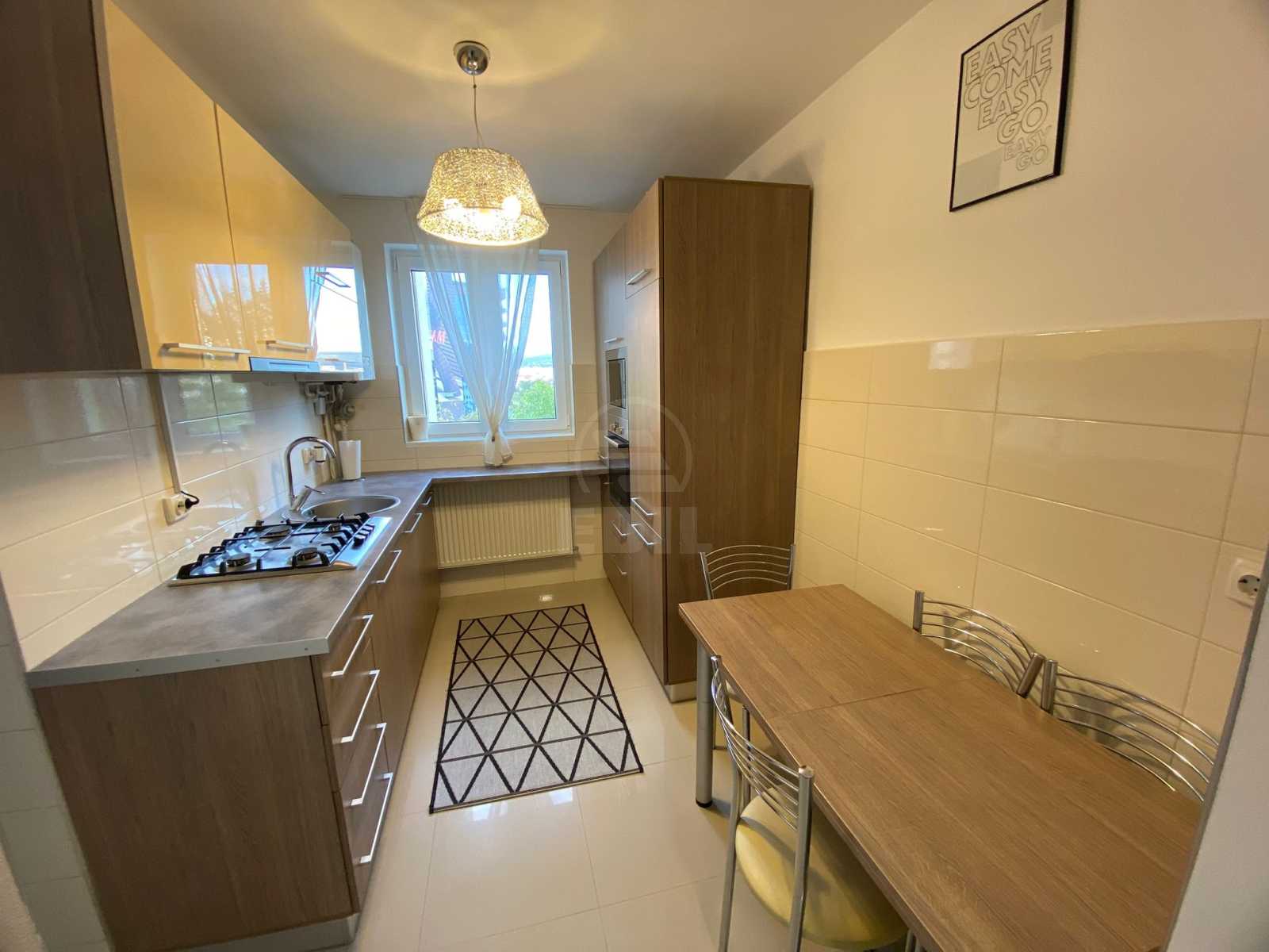 Situat în cartierul Gheorgheni din Cluj-Napoca, la doar 5 minute de mers pe jos de Iulius Mall, acest apartament cu 2 camere este alegerea perfectă pentru cei care își doresc să fie aproape de tot ce contează: mijloace de transport în comun, supermarketuri, cafenele, parcuri și centre de interes. Apartamentul se află la etajul 3 dintr-un imobil cu 4 etaje, într-o zonă liniștită, bine întreținută și cu acces rapid către punctele centrale ale orașului. Are o suprafață utilă de 52 mp și o compartimentare decomandată, oferind intimitate și funcționalitate. Este complet mobilat și utilat modern, gata să devină noua ta locuință fără griji sau investiții suplimentare. Locuința dispune de toate dotările necesare pentru un trai confortabil: centrală termică proprie, aer condiționat pentru zilele călduroase, frigider, mașină de spălat, aragaz, interfon, precum și finisaje moderne: parchet laminat, gresie și faianță de calitate. Ai la dispoziție o baie spațioasă, un balcon perfect pentru momentele de relaxare, și un ambient primitor, decorat cu bun gust. Fie că ești student, tânăr profesionist sau un cuplu în căutarea unei locuințe cochete într-o zonă excelentă, acest apartament bifează toate criteriile. Îți oferă confort, accesibilitate și o atmosferă plăcută, într-o locație cu multe facilități în imediata apropiere. Nu rata această oportunitate! Pentru mai multe detalii sau pentru a programa o vizionare, te așteptăm să ne contactezi telefonic sau să ne vizitezi la sediul nostru: EDIL – Str. Iuliu Maniu, Nr. 13, Ap. 6, Cluj-Napoca. Suntem aici să te ajutăm să găsești locuința perfectă!