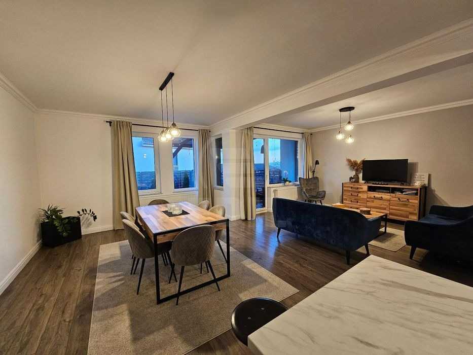 EDIL vă propune spre închiriere o casă individuală modernă, situată în cartierul Iris din Cluj-Napoca, în apropiere de strada Voroneț, parte a unei construcții noi. Proprietatea are o suprafață utilă de 120 mp și beneficiază de un teren generos de 300 mp, oferind confort, funcționalitate și intimitate. La parter, casa dispune de o bucătărie open-space cu zonă de luat masa, un living spațios, o baie mare cu geam și obiecte sanitare de calitate, precum și o terasă acoperită perfectă pentru relaxare. La etaj se află dormitorul matrimonial, două dormitoare suplimentare și două băi spațioase, fiecare prevăzută cu fereastră și complet echipată. Casa se află într-o zonă liniștită, ideală pentru familii, și este dotată cu centrală proprie, ferestre și uși din termopan, grădină amenajată, acces auto în curte și interfon. De asemenea, este complet utilată cu frigider, aragaz, mașină de spălat și televizor. Pentru mai multe detalii despre această proprietate sau pentru alte oferte disponibile, vă invităm să ne contactați telefonic sau să ne vizitați la sediul EDIL, pe strada Iuliu Maniu, nr. 13, ap. 6, Cluj-Napoca.