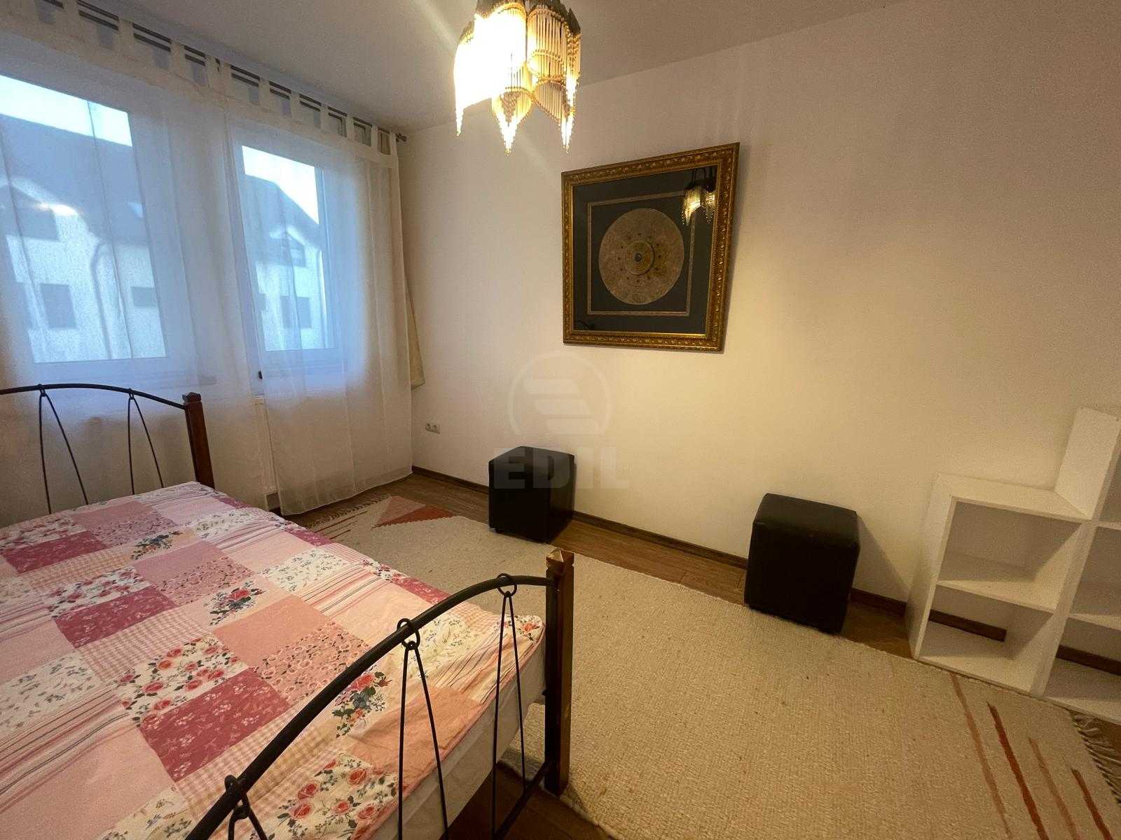 EDIL Imobiliare vă propune spre închiriere o casă lipita modernă, situată în cartierul Bună Ziua, în apropiere de Leroy Merlin. Proprietatea face parte dintr-o construcție nouă, amplasată într-o zonă liniștită, cu spațiu verde și acces facil către principalele puncte de interes ale orașului.Casa are o suprafață utilă de aproximativ 150 mp și este amplasată pe un teren de 250 mp. Este structurată pe trei niveluri, oferind un spațiu generos și bine organizat. La parter se află livingul luminos, bucătăria, o baie de serviciu și un hol spațios. Etajul întâi include două dormitoare, dintre care unul beneficiază de dressing, o baie și un hol. Etajul al doilea oferă un al doilea living, un dormitor și o baie, spațiu ideal pentru relaxare sau zonă de lucru.Casa dispune de un pod mare ce poate fi folosit ca spațiu de depozitare, o curte mică și îngrijită cu acces direct din living, precum și loc de parcare în fața imobilului (există posibilitatea parcării a două mașini). Este complet mobilată și utilată, dotată cu centrală termică proprie, ferestre termopan, uși termopan, frigider, aragaz și mașină de spălat.Proprietatea este ocupabilă imediat. Se acceptă animale de companie.Casa este ideală pentru o familie care caută confort, intimitate și un stil de viață modern într-o zonă de case bine întreținută și liniștită. Pentru mai multe detalii sau pentru programarea unei vizionări, vă invităm să ne contactați telefonic sau la sediul agenției EDIL Imobiliare, situat pe strada Iuliu Maniu nr. 13, ap. 6, Cluj-Napoca. CACJ355377